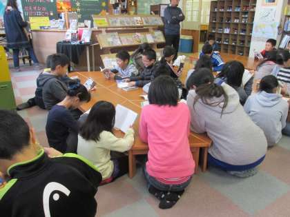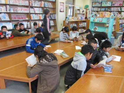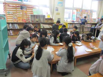 11/15 読書月間の取り組みの1つ、図書室朝読書の様子です。今朝は、5年1組が行いました。