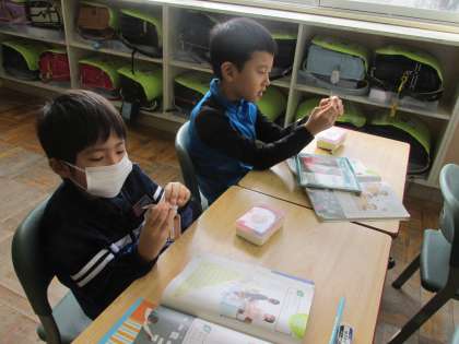 11/15 1年生算数《繰り下がりのあるひき算》の頑張りの様子です。計算カードをめくりながら、ぱっと答えを出せるように頑張っています。