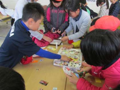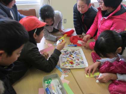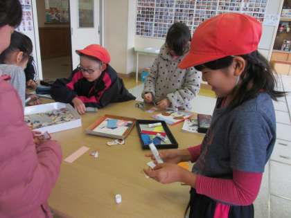 思い思いに、好きな色の台紙にシールやカットを貼ってしおりをつくっていました。