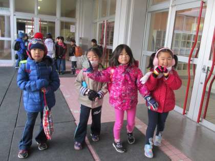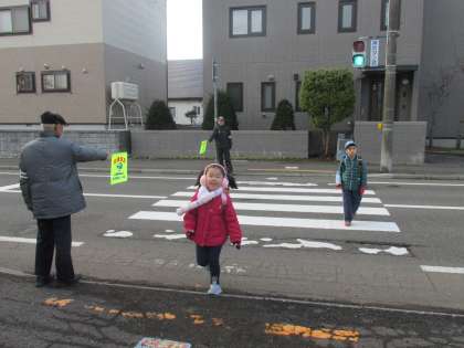 今朝は、気温0度と、とても寒かったですが、たくさんの見守りとあたたかい服装で子ども達は元気に登校していました。