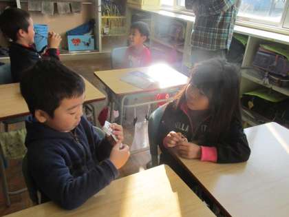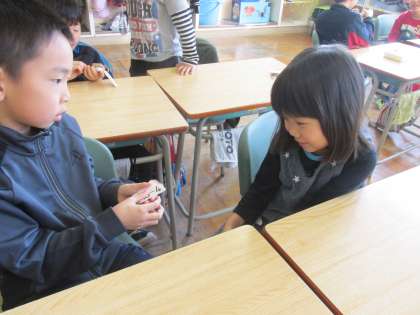 お互いに問題を出し合ってがんばっています。