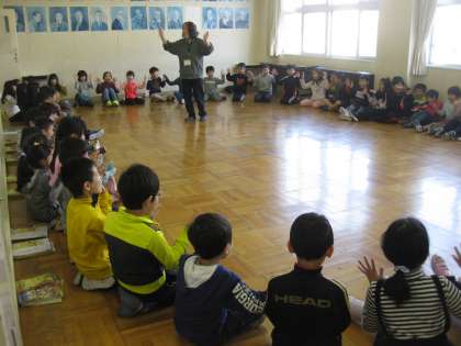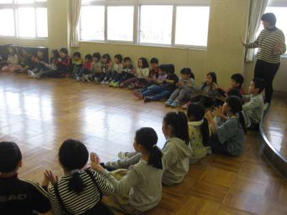 11/16 2年生音楽の様子です。身体を動かしながら《あんたがたどこさ♪》を歌っていました。