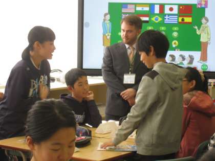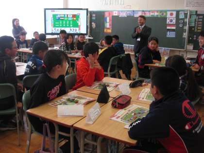 6年生の外国語活動も5年生と同様に、ALTルーカス先生とPIT松本先生と担任によるT・T指導です。様々な国について学習しました。