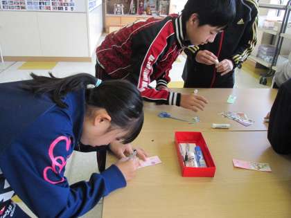 すてきなセンスのいいしおりができました。後日、ラミネートされ、リボンをつけたしおりが手元に戻ってきます。