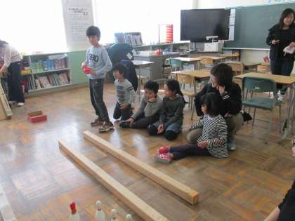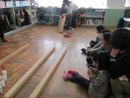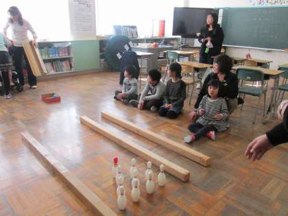 11/17 校区に居住している札幌養護学校のお友達とあさひ学級の今年度3回目の交流の様子です。ボーリングゲームでも楽しみました。