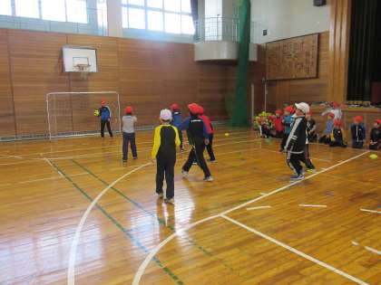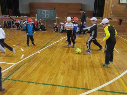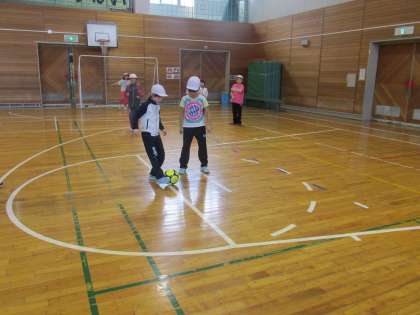 3年生の体育の様子です。今日はゴール型ボール運動《ミニサッカーゲーム》をしていました。