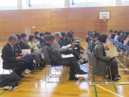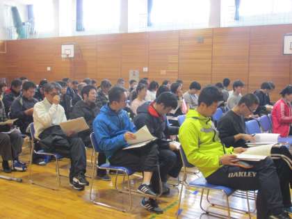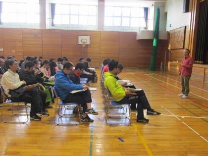 授業を見ていただいた後は、体育館で全体会・分科会を行いました。