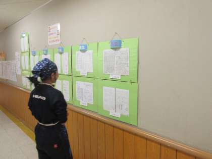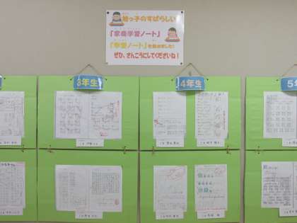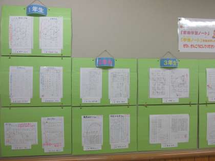 11/21 職員室前の掲示板で各学年のよさげな家庭学習ノートを紹介しています。