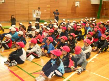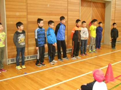 中休みに書記局と体育委員会が共催する異学年交流企画、スマイルタイムが行われました。3年生と6年生が力を合わせて障害物競走にチャレンジです。