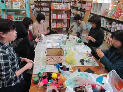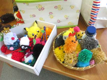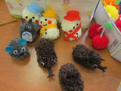 今日も図書ボランティアさんが来校し、《ほんの森の仲間たちポンポンマスコット》を作ってくれました。