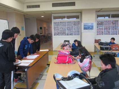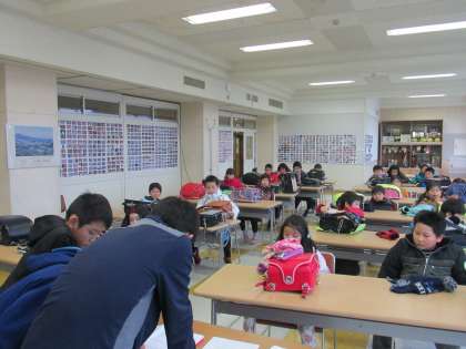 本日、放課後、校外班会議を行い、冬の安全等について話し合いました。また、その後、集団下校訓練を行いました。冷たい雨の降る中の集団下校だったので、よい訓練になりました。