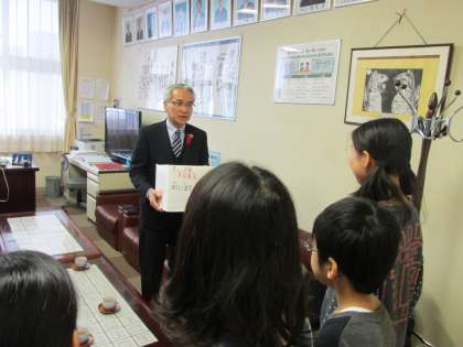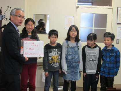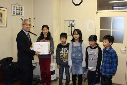 12/11 児童会書記局が全校に呼びかけた、赤い羽根共同募金を、本日、恵庭市社会福祉協議会の方にお渡ししました。