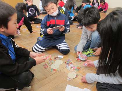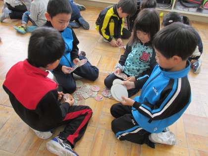 1年生の生活科《昔遊び》の様子です。昨日に引き続き昔遊びにチャレンジです。各学級昨日とは違う種類のものに挑戦していました。