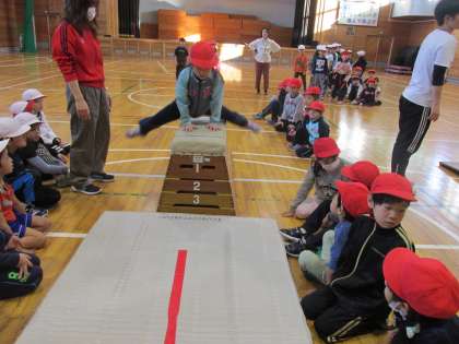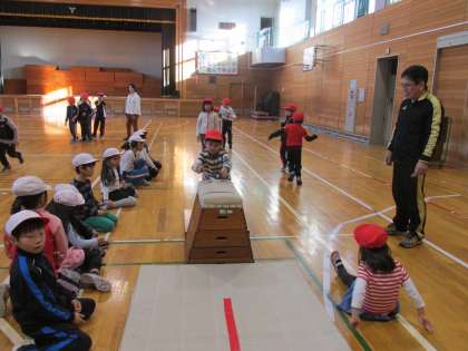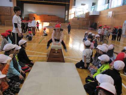1年生の体育《跳び箱》の様子です。けっこう上手に跳べていました。