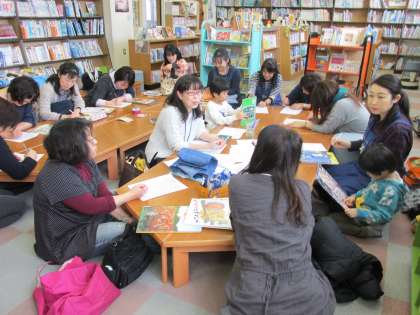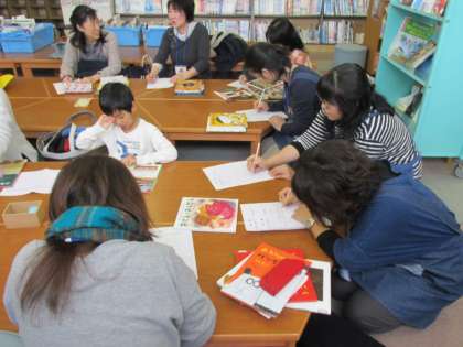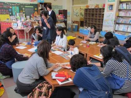 読み聞かせ後の図書室ミーティングの様子です。お話しプーさんの皆様、いつもありがとうございます。
