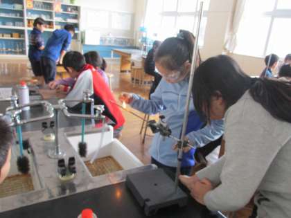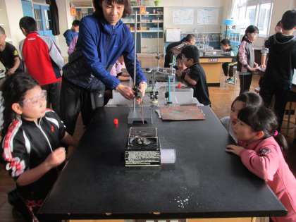 4年生の理科《もののあたたまりかた》の様子です。マッチ、ろうそく、ガスコンロなど火を使う実験にわくわくどきどきの子ども達です。