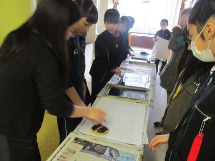 みんなで印刷。協力して作業していました。