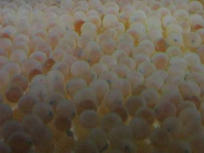 12/19 昨日やってきたさけの卵ちゃんの様子です。職員玄関で飼育しています。