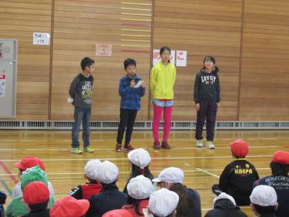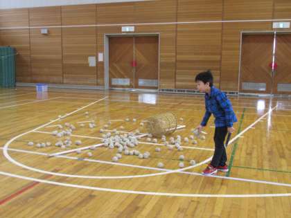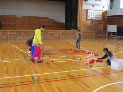 児童会書記局主催の異学年交流スマイルタイムが中休みにありました。今日は、3年生と4年生の玉入れ交流でした。