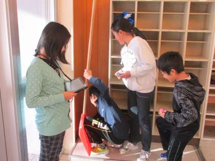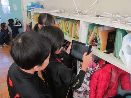 すみのすみかに住人をおいてタブレットで撮影し、友達と交流します。