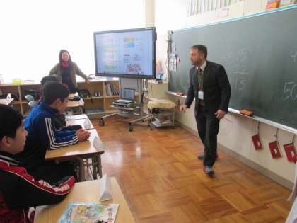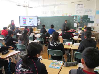 6年生の外国語活動では、ルーカス先生が日本人の苦手なアクセントやイントネーションについてわかりやすく指導してくれます。15と50の特訓もしました。