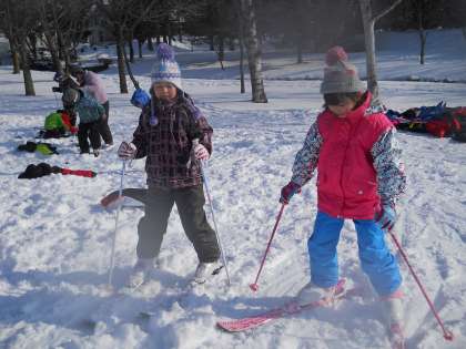 来週、北長沼スキー場でスキー学習を行う3年生は、冒険公園で足慣らしをしました。