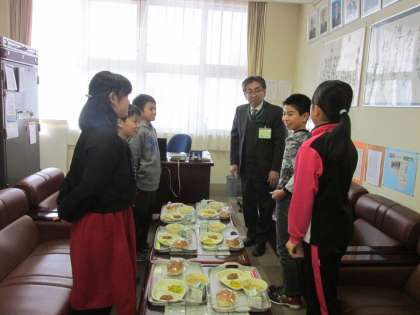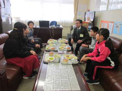 今日から6年生と校長先生との会食給食が始まりました。しばらくの間、今日の給食は会食の様子を紹介します。