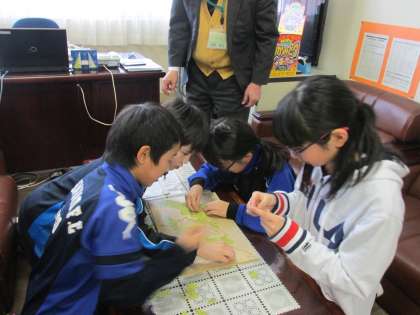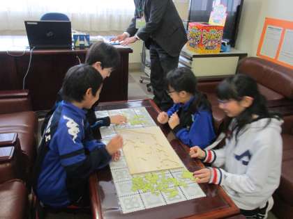 食後は、県名パズルに協力してチャレンジし、最速タイムで完成させました。