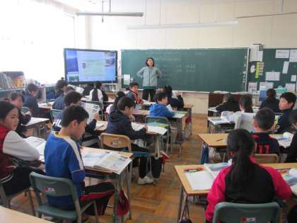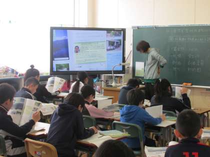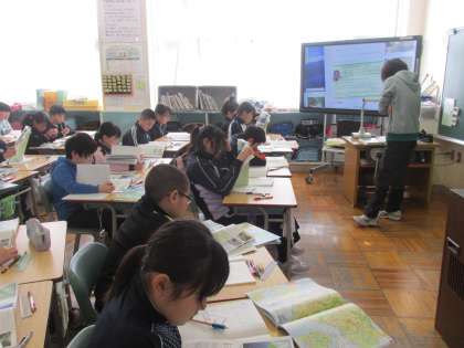 4年生の社会科の学習の様子です。全クラスがほぼ毎時間活用している電子黒板は、本当に学習に欠かせないものになりました。 電子黒板のない授業は、どのようにしていたのかもう思い出せないくらいです。
