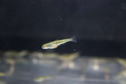 今朝のさけちゃんは、水面近くや水槽の真ん中など、いろいろなところを活発に泳ぎ回るようになってきました。