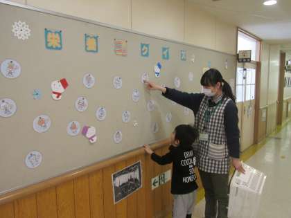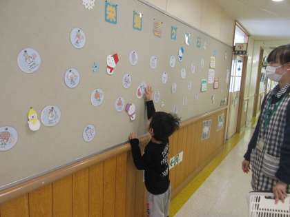 02/16 保健室前掲示板がリニューアルされ、栄養素の学習ができるようになりました。さっそくかわいい1年生が興味を持ってカードを見ていました。