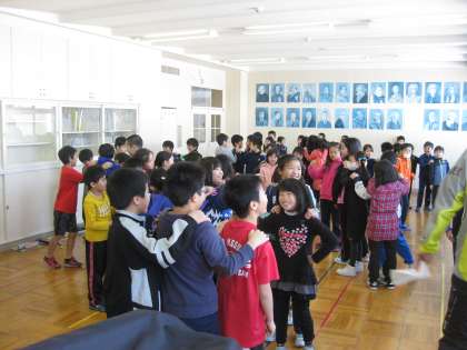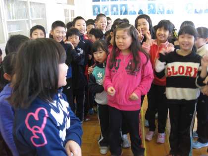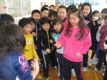 音楽室でありがとうの花を歌い、その後、ジャンケン列車をしました。