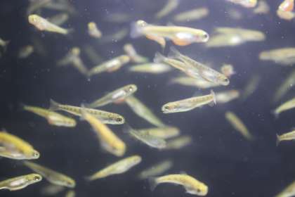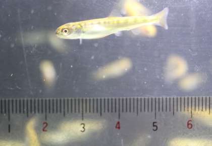 おはようございます。今朝もマイナス15度以下と連日の冷え込みで2月下旬とは思えない厳寒の年ですね。さて、今朝のさけちゃんの様子です。大きいさけちゃんは3.3センチメートルくらいになりました。