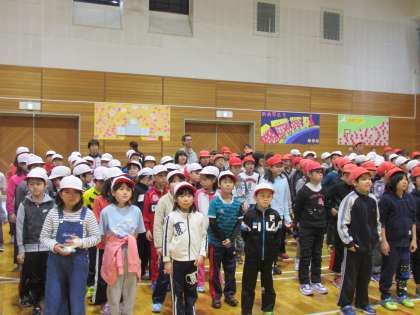 最初に全校で『ありがとうの花』を合唱しました。