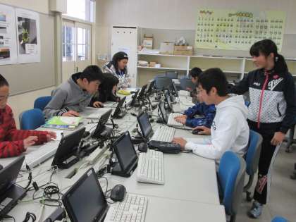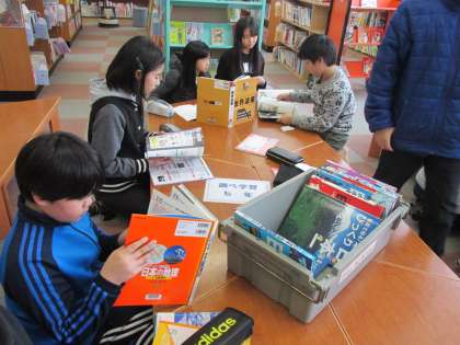 03/09 5年生が社会科の学習で、図書室やタブレットPCを使って、国内の世界遺産調べをしていました。