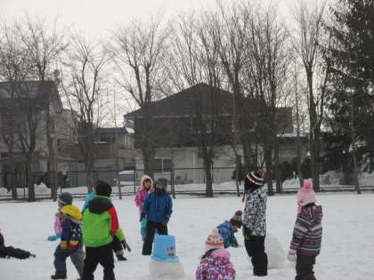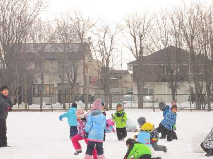 雪玉つくりには、ちょうどよい湿雪でした。