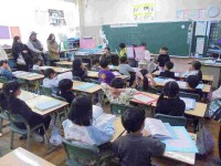 修了式の後に離任式を行いました。学校長より一人一人、退職・転任の紹介があり、その後、退職・転任される先生方からの挨拶をうかがいました。最後に、児童会代表のお礼の言葉、校歌の合唱を聞いていただきました。