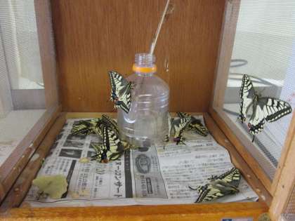 05/14 昨年の9月9日にさなぎになった黄アゲハが土日で羽化していました。羽化の様子を子ども達に見せたかったのですが土曜日のあたたかさで羽化してしまったようです。