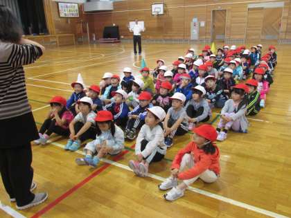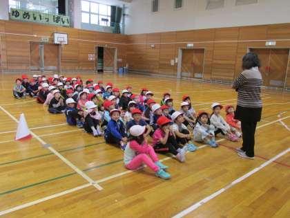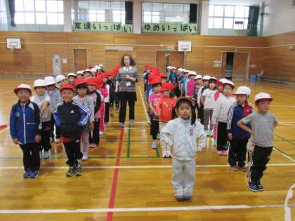 1年生の体育の様子です。運動会に向けて、徒競走の並び方や紅白の並び方を練習していました。