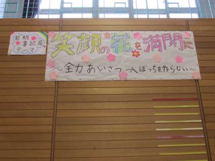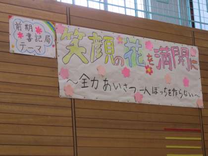 体育館には、書記局テーマがはられています。