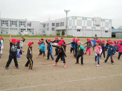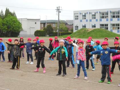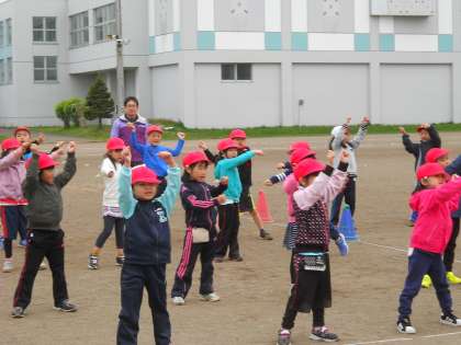 05/18 グラウンドでよさこいソーランを練習する1・2年生体育の様子です。