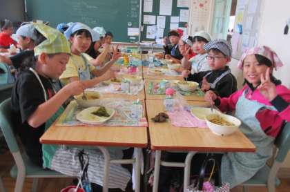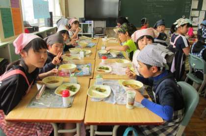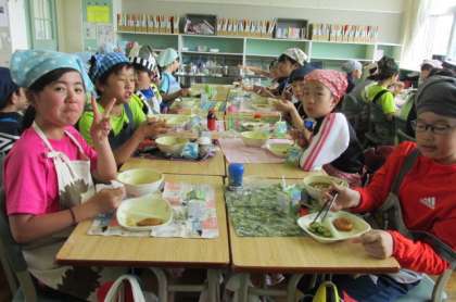 カレーうどん美味しく食べました。明日は5年1組の予定です。