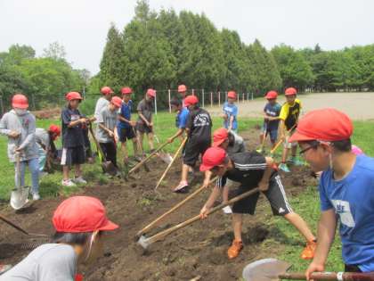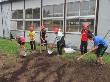 プール奥にある教材園耕しもしました。そろそろ野菜の苗を植えます。