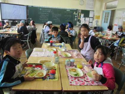 3年1組の給食の様子です。