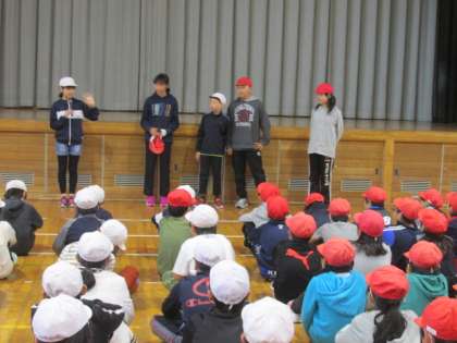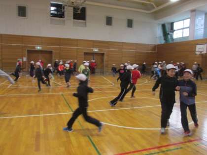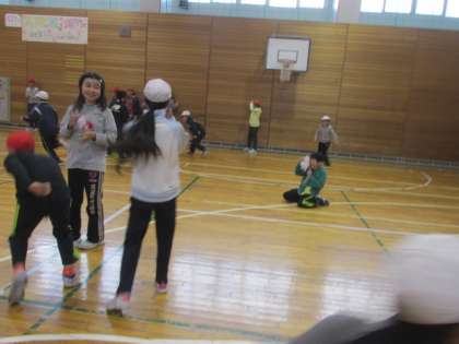 15日(金)に予定していた、書記局主催の中休みの5・6年スマイルタイムを遠足延期の関係で本日行いました。5・6年生混じっての増えオニを楽しみました。
