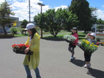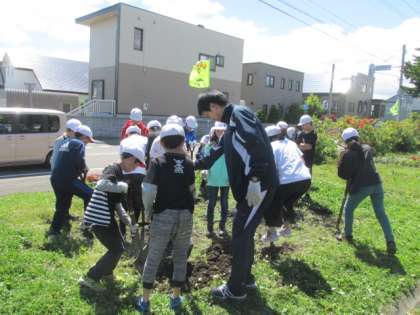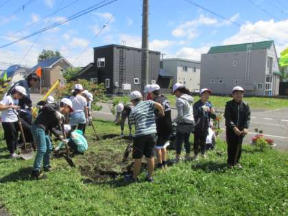 4年生の花壇作業の様子です。