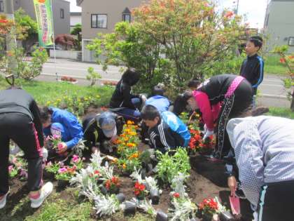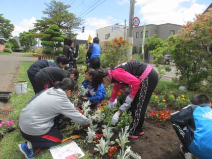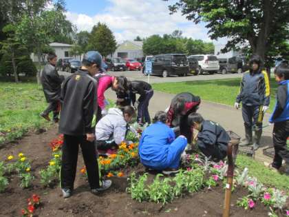 これで、3年生以上全学級の花壇ができあがりました。今後は、まめに手入れをしながら10月まできれいな花壇を維持していきます。