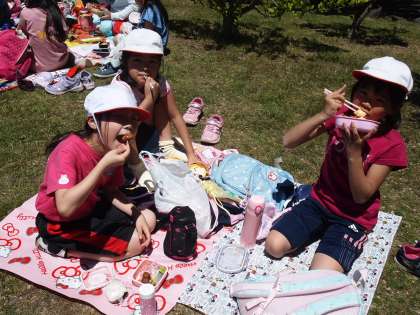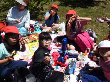 たくさん歩いて、たくさん遊んで、お待ちかねのお弁当です。