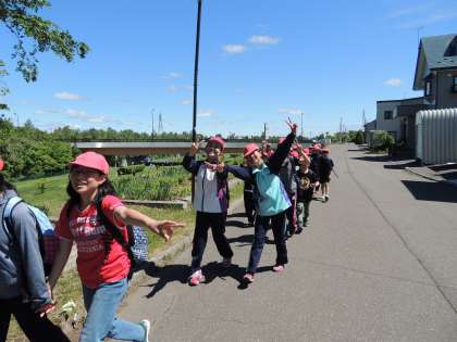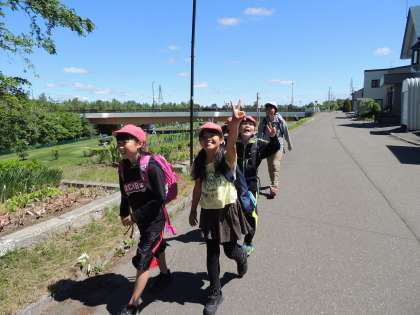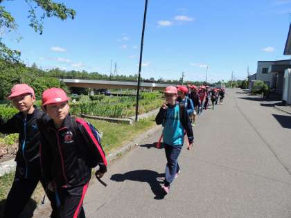 5年生は桜町多目的広場目指して出発です。