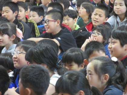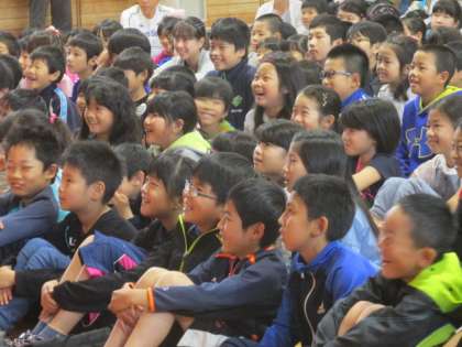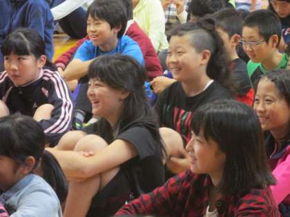 テンポのよい落語に笑いがあふれる子ども達。